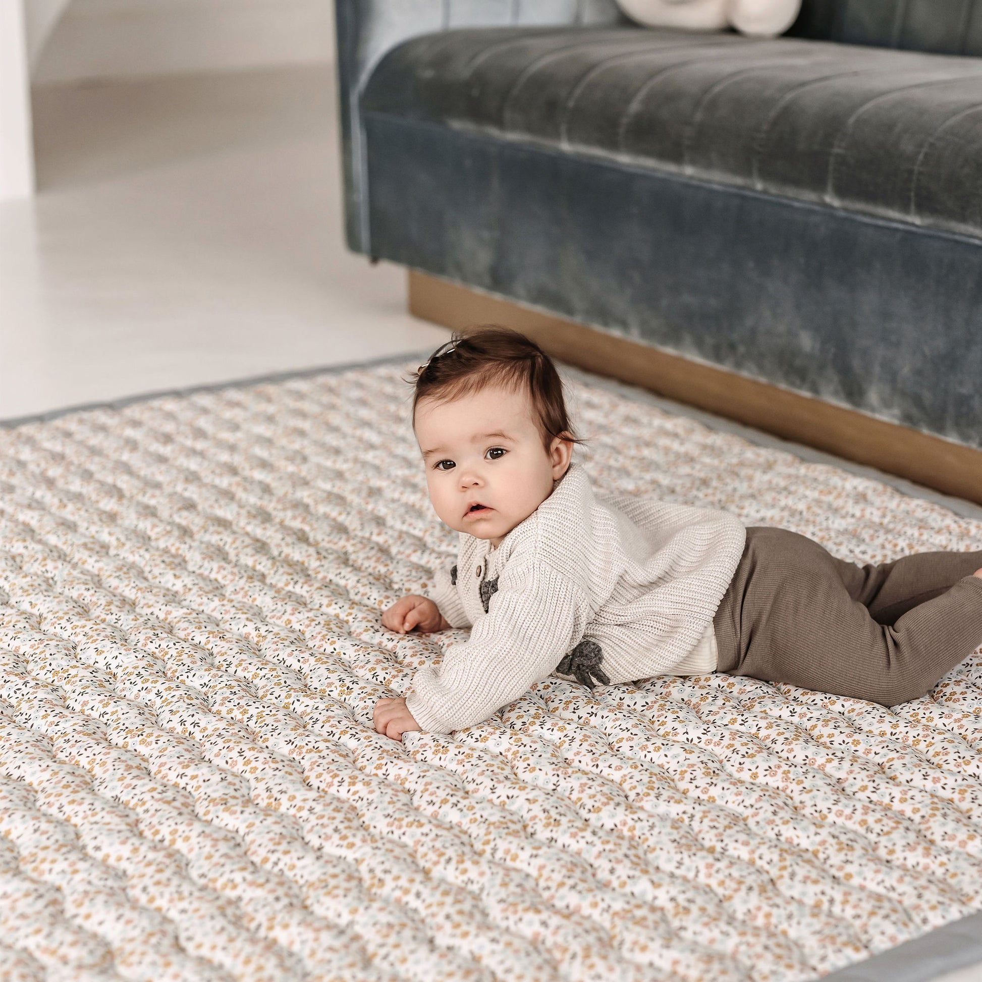 audinio, judėdamas kūdikis ant jo jausis stabiliai. Kilimas yra paminkštintas,