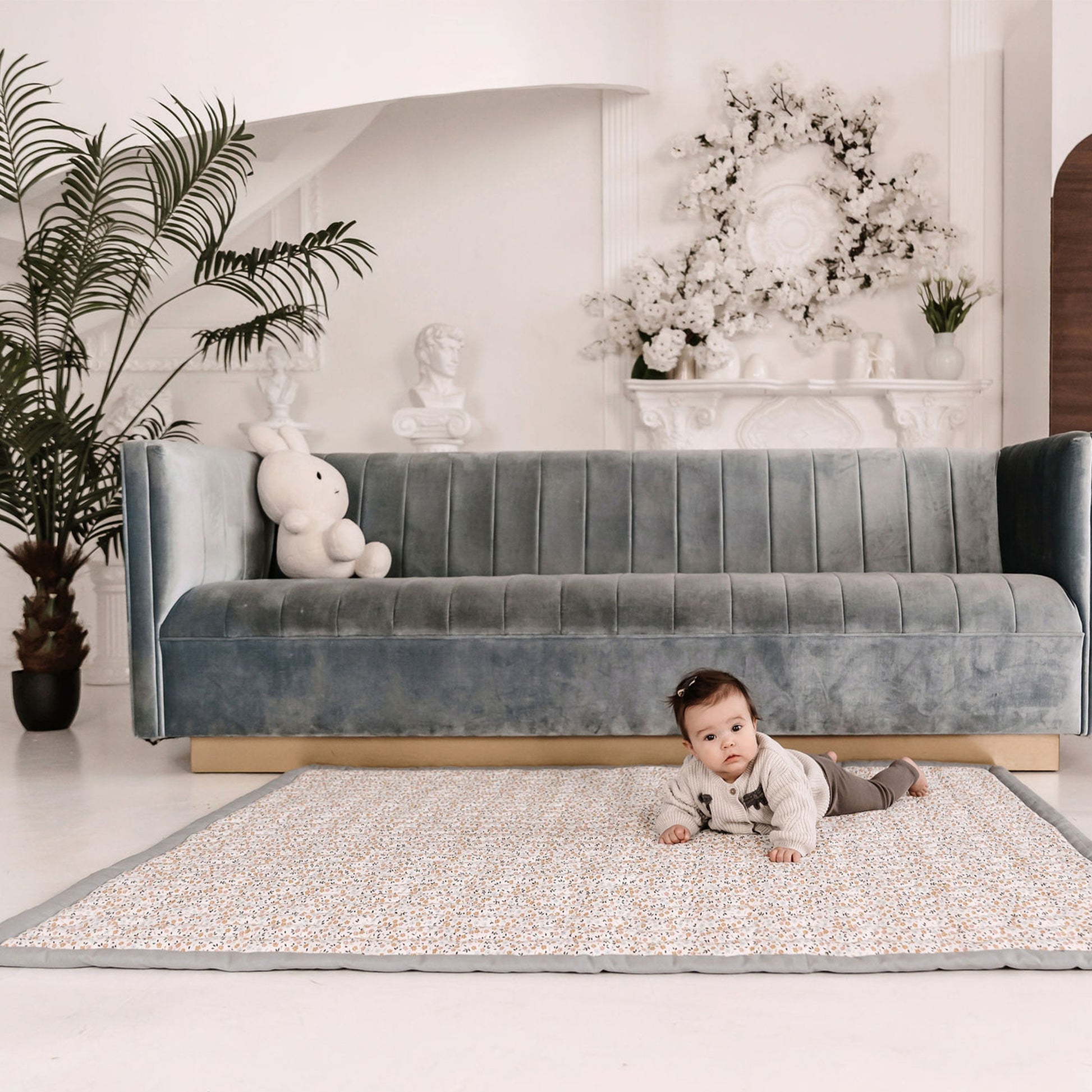 Medvilninis žaidimų kilimas puikiai tiks patiems mažiausiems. Dėl neslystančio apatinio