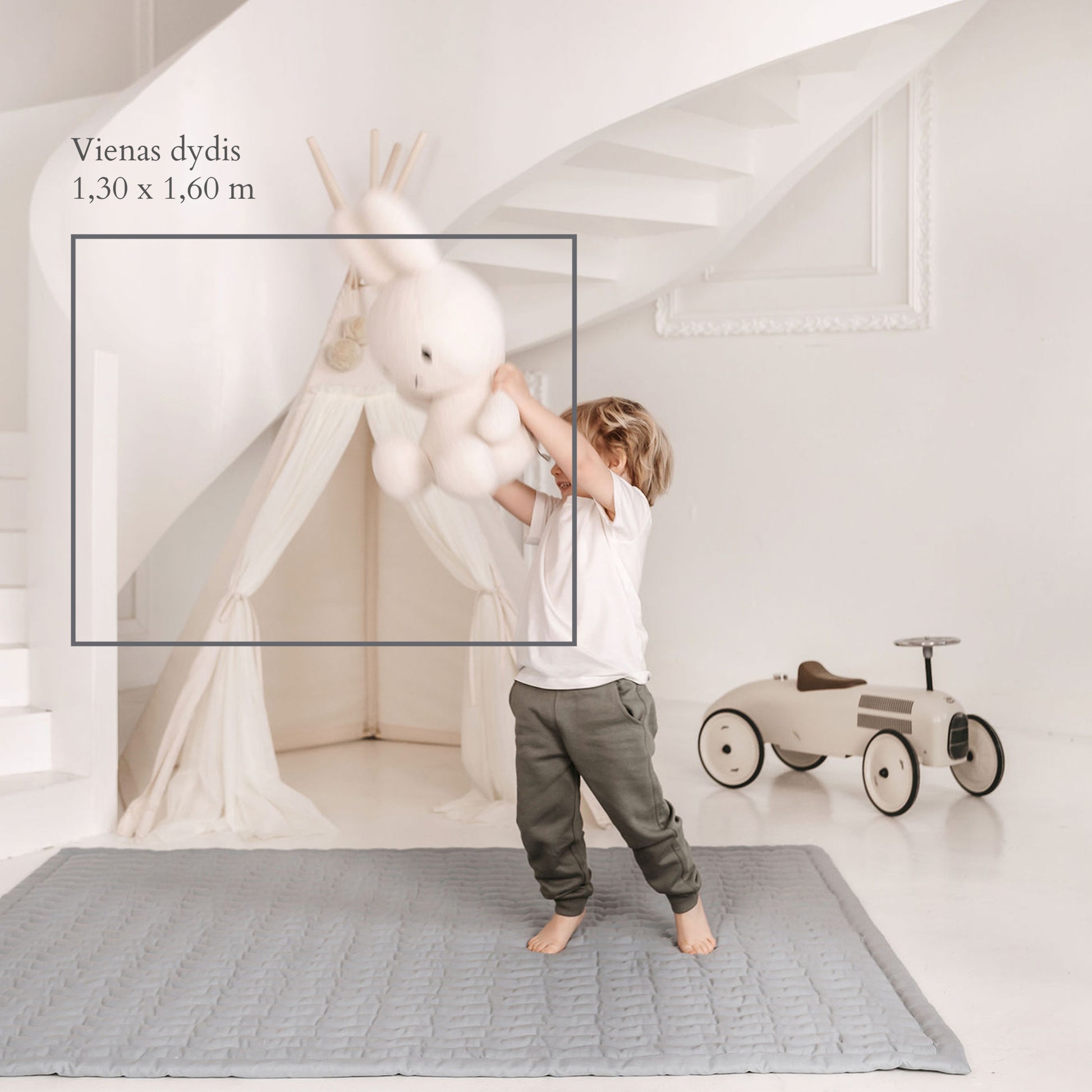 Medvilninis žaidimų kilimas puikiai tiks patiems mažiausiems. Dėl neslystančio apatinio